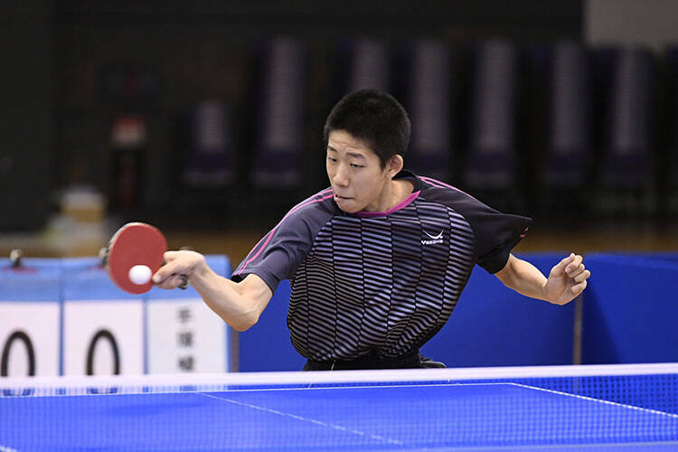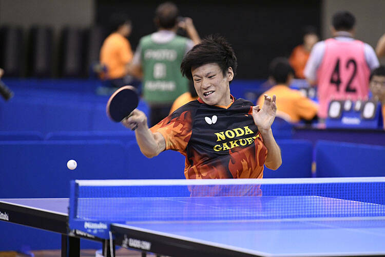 (1ゲーム目、7?10から逆転されたことについて)正直、学校対抗の引きづりはあり、2ゲーム目で出足が悪かったけど、立ち直れて修正できました。相手はサービスレシーブが得意な選手で、僕もどちらかと言えばそうなので、お互い先手の取り合いになるだろうと前もって準備しました。試合は、お互い崩し合いになったので、我慢してまずラリーに持って行こうと臨みました。