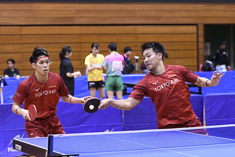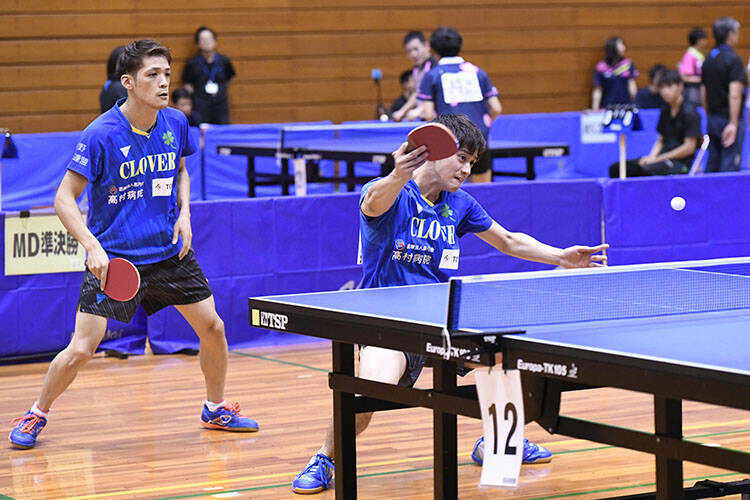 男子ダブルスは、横山輝/徳島剛(原田鋼業)が制した。横山がうまいボールさばきでチャンスをつくり、徳島が豪打で仕留める連係で度重なる接戦をくぐり抜け、原田鋼業に全日本社会人初タイトルをもたらした。