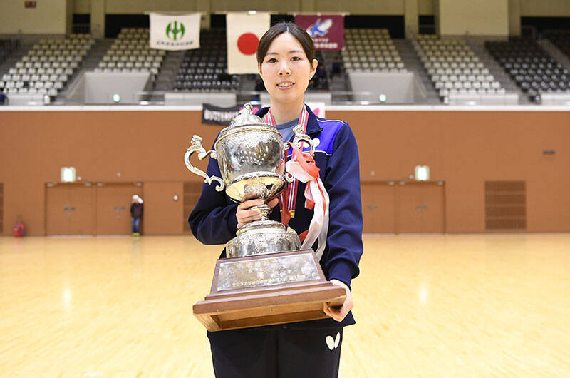 最後の決勝は普段一緒に練習している選手で、ボールもすごい強くて最初の方は相手のペースに飲まれているシーンが多かったと思うんですけど、何とか頭を使って工夫して戦うことができました。練習では山本選手の方が分がいいです。いつもは力で対抗して負けてしまうことが多かったので、今回は相手にどれだけ強く打たせないかを考えたり、(攻められたときは)守りに徹したりと、いつもとは違うプレーをしました。