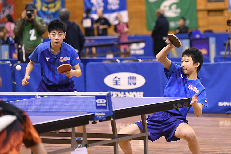 2位の芝/岩井田雄斗(野田学園中)は、準決勝で萩原/加山(愛工大名電中)に打ち勝って決勝進出。決勝でも中村/菅沼としぶとく打ち合ったが、最後はわずかにサービスレシーブが甘くなり、振り切られた。
