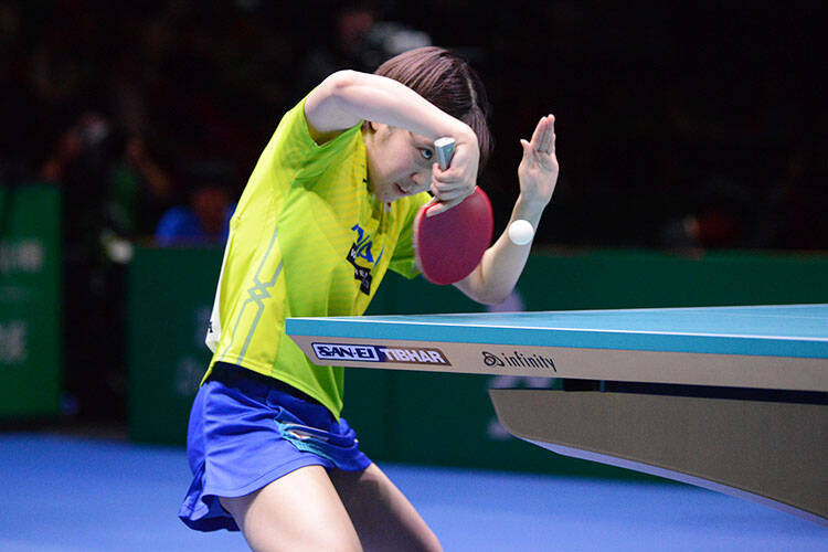 その孫穎莎をリズムのよいクレバーなプレーであっという間に2対0と追い詰めたのが日本のエース伊藤だ。2ゲーム目で追い上げながらも、伊藤に逃げ切られた孫穎莎は半ばあきらめたような表情すら見せていたが、3ゲーム目から伊藤の歯車が狂う。開き直ったか、孫穎莎の動きがよくなり、やっと届くようなフォア側のボールもカウンターするなど、一気に覚醒。4ゲーム目も大きくリードを広げ、孫穎莎がそのまま押し切る。しかし、ここで終わる伊藤ではない。最終ゲーム6対7という大事な場面でサービスミスをした孫穎莎を尻目に、伊藤は着実にポイントを重ね10対7とマッチポイント。しかし、ここからミスを連発し、まさかの5連続失点。日本は手痛い2失点目を喫した。
