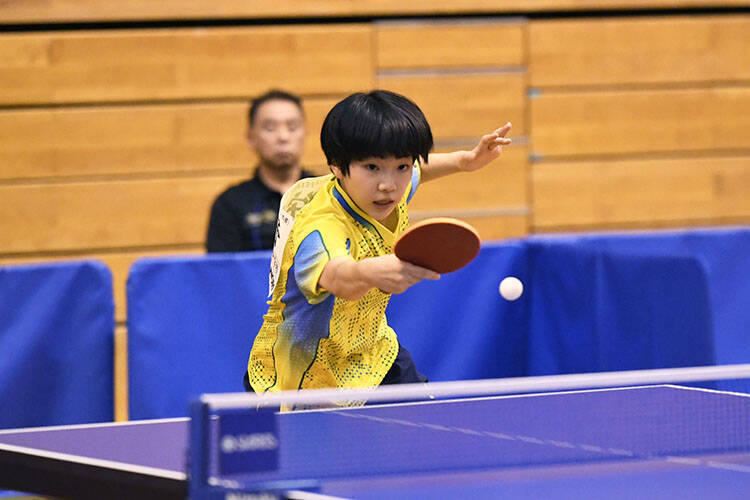 首藤(石田卓球クラブ)は、小柄な体を目いっぱい使ったダイナミックなフォアハンドドライブで、ダブルスに続き二冠を目指したが、由本の強打に屈した。