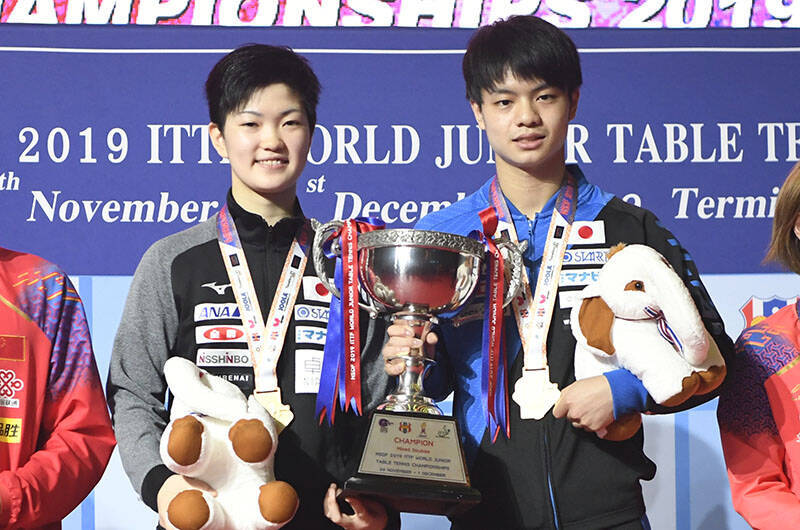 世界ジュニア卓球選手権タイ大会が、コラート(タイ)のターミナル21で11月24日より開幕した。大会最終日は各種目準決勝、決勝が行われる。準決勝に続いて、決勝は混合ダブルスで幕を開けた。準決勝でも中国ペアを破った日本の宇田/木原は、決勝で徐瑛彬/石洵瑶の中国のエースダブルスをストレートでくだし初優勝を決めた。