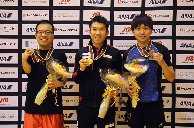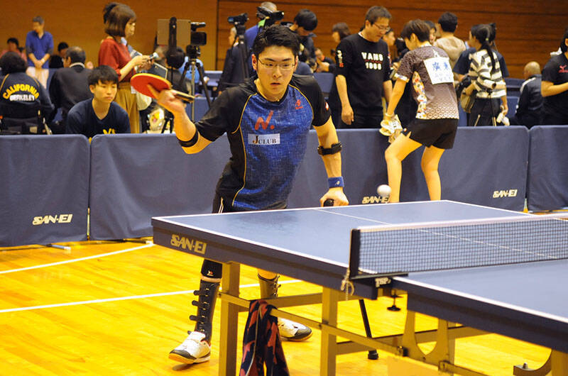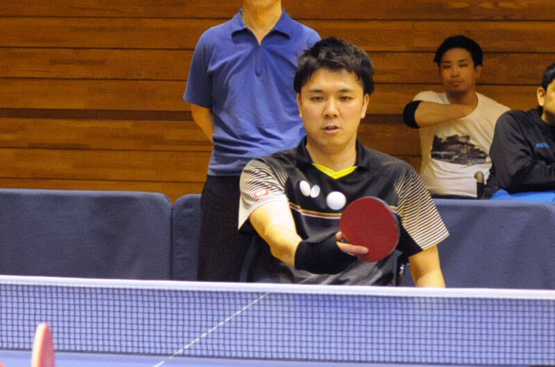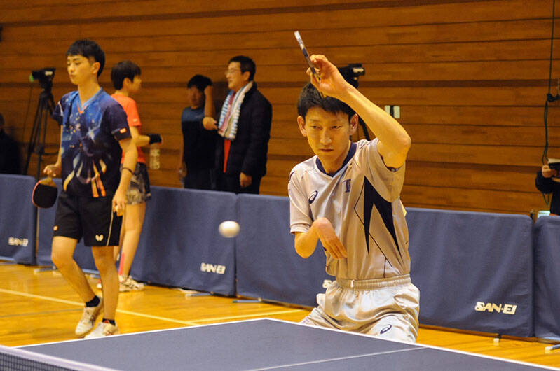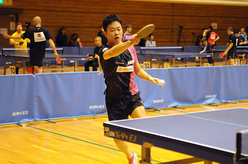 中本亨(手前)の決勝点のプレーフォアハンドの攻撃が決まった