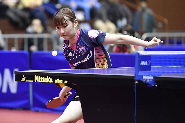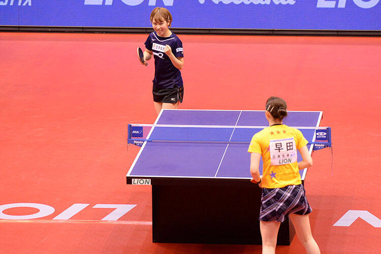 早田ひな(日本生命)は、持ち前の強打で橋本帆乃香、佐藤瞳(ともにミキハウス)という日本屈指のカットマンに完封勝ちして決勝進出。
