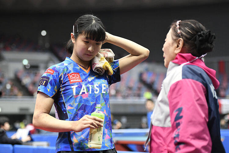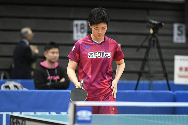 木原は、菅澤のしゃがみ込みサービスからの両ハンドの前にストレート負け。得意の前陣速攻を菅澤に前中陣で粘り強く返され、打つ手がなくなってしまった。
