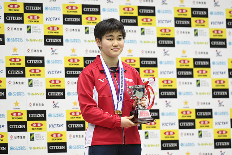 「今年は絶対優勝するという気持ちで臨んだので、優勝できてうれしいです。試合前から小塩さんの対策は結構してきて、それが試合で生かせたのでよかったです。カットマンに対してはスマッシュが有効的なので、その練習をたくさんしてきました。