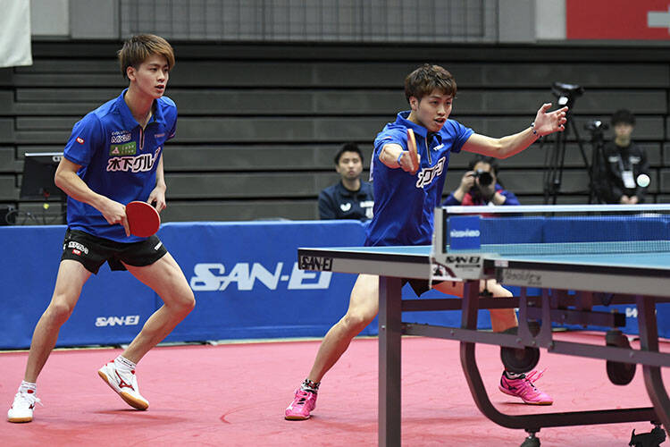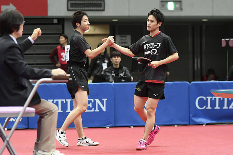 男子ダブルス4回戦からはスーパーシードが登場。昨年2位で第1シードの松山/髙見が田添健汰/田添響の兄弟ペアに敗れたほか、ダブルスでV8を狙う水谷隼が大島とのペアで登場し、初戦を突破した。