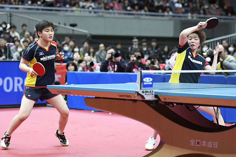 伊藤美誠/早田ひな(スターツ/日本生命) 3,9,-7,8 芝田沙季/大藤沙月(ミキハウス/ミキハウスJSC)