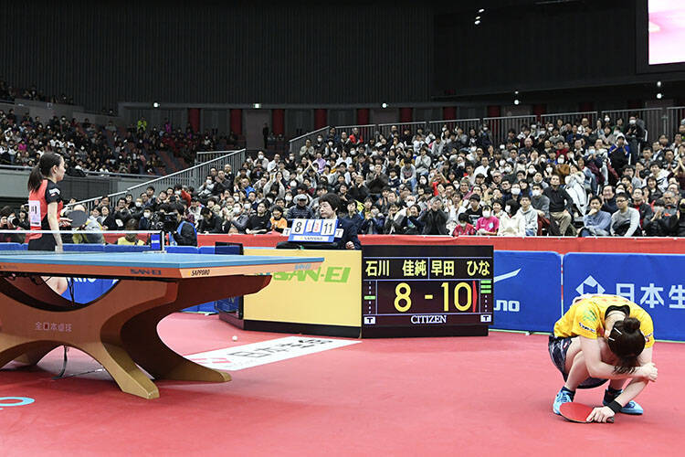 決勝は、早田ひな(日本生命)対石川佳純(全農)のサウスポー同士の対戦になった。両者は前回の女子シングルス6回戦でも対戦しており、その時は早田が石川を圧倒しているが、今大会も同様の展開になってしまった。