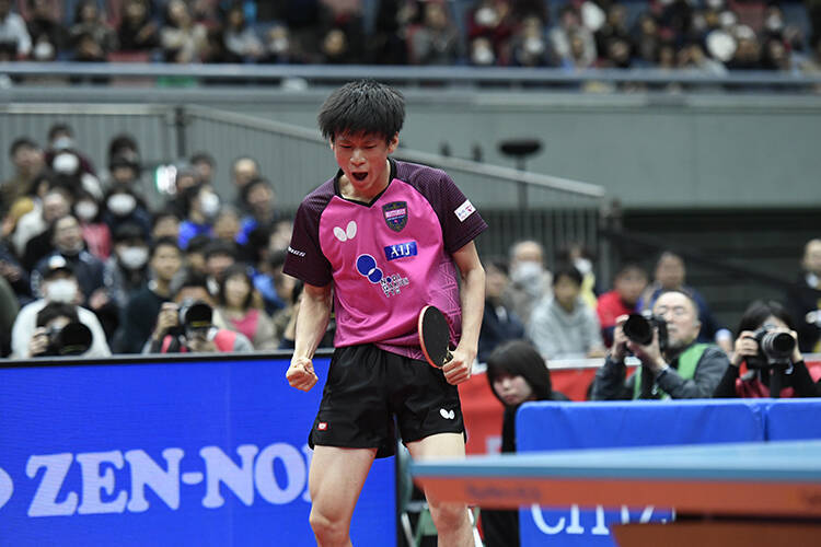 今大会、用具を変えて初めての大会なんですけど、丹羽選手や張本選手とは練習しかあまりやったことなくて、試合でこれだけ自分がしっかり(ボールに回転を)かけてオリンピック選手二人からミスを誘えたことは、世界で活躍するためには必ず必要なことなので、用具を変えたことが一番の財産だと思います。