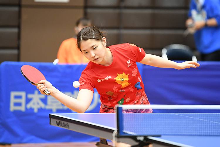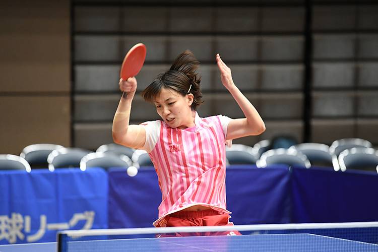 ダブルスがなくなり、引き分けありという変則的な試合方式の中、女子1部を制したのは中国電力。7戦全勝でMVPに輝いた成本綾海を筆頭に、裏面ドライブを使う宋恵佳、シェーク異質型の土田美佳、カット主戦型の庄司有貴という多彩で充実した戦力で、2019年後期日本リーグ秋田大会に続き、連覇を果たした。