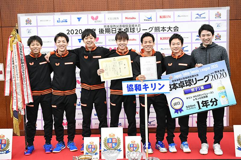 松平賢二が選手兼監督としてチームをまとめ、MVPを獲得した平野友樹、引き合いにめっぽう強い渡辺裕介、地元熊本県出身のルーキー・硴塚将人のオーダーは穴がなく、序盤でシチズン時計、日鉄物流ブレイザーズをともに4対0で退け、優勝ロードに乗った。