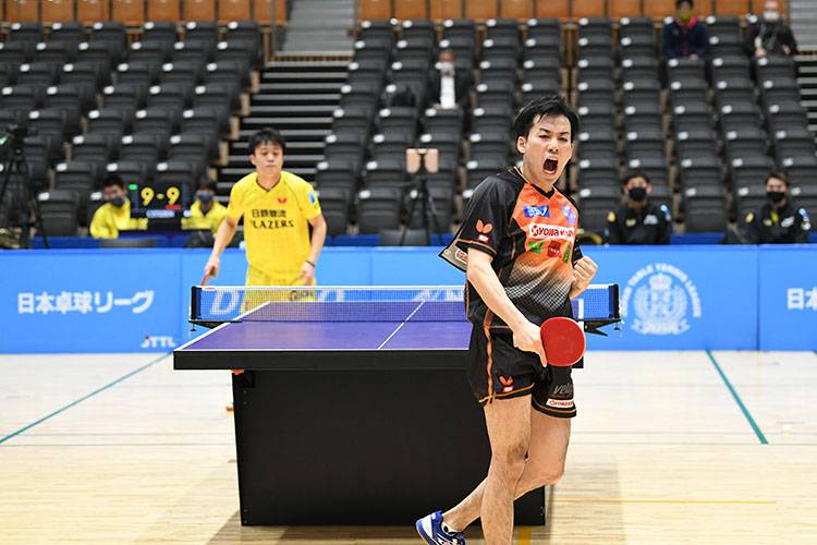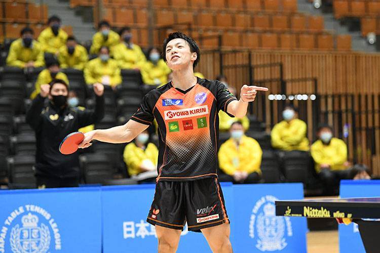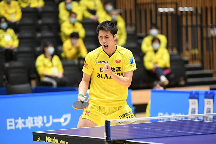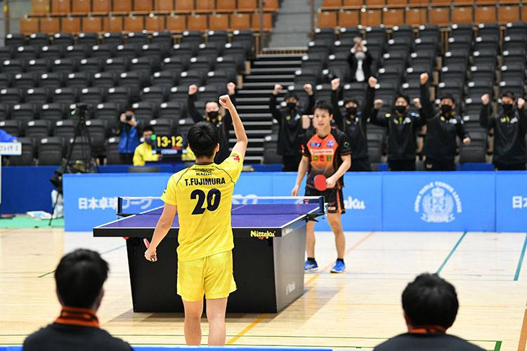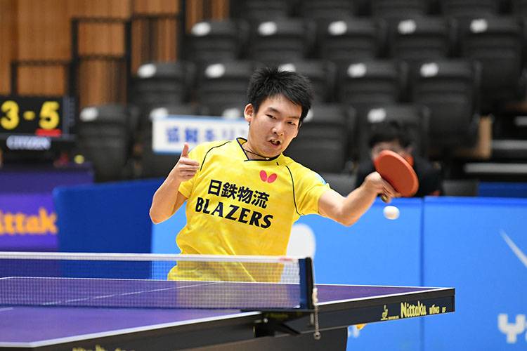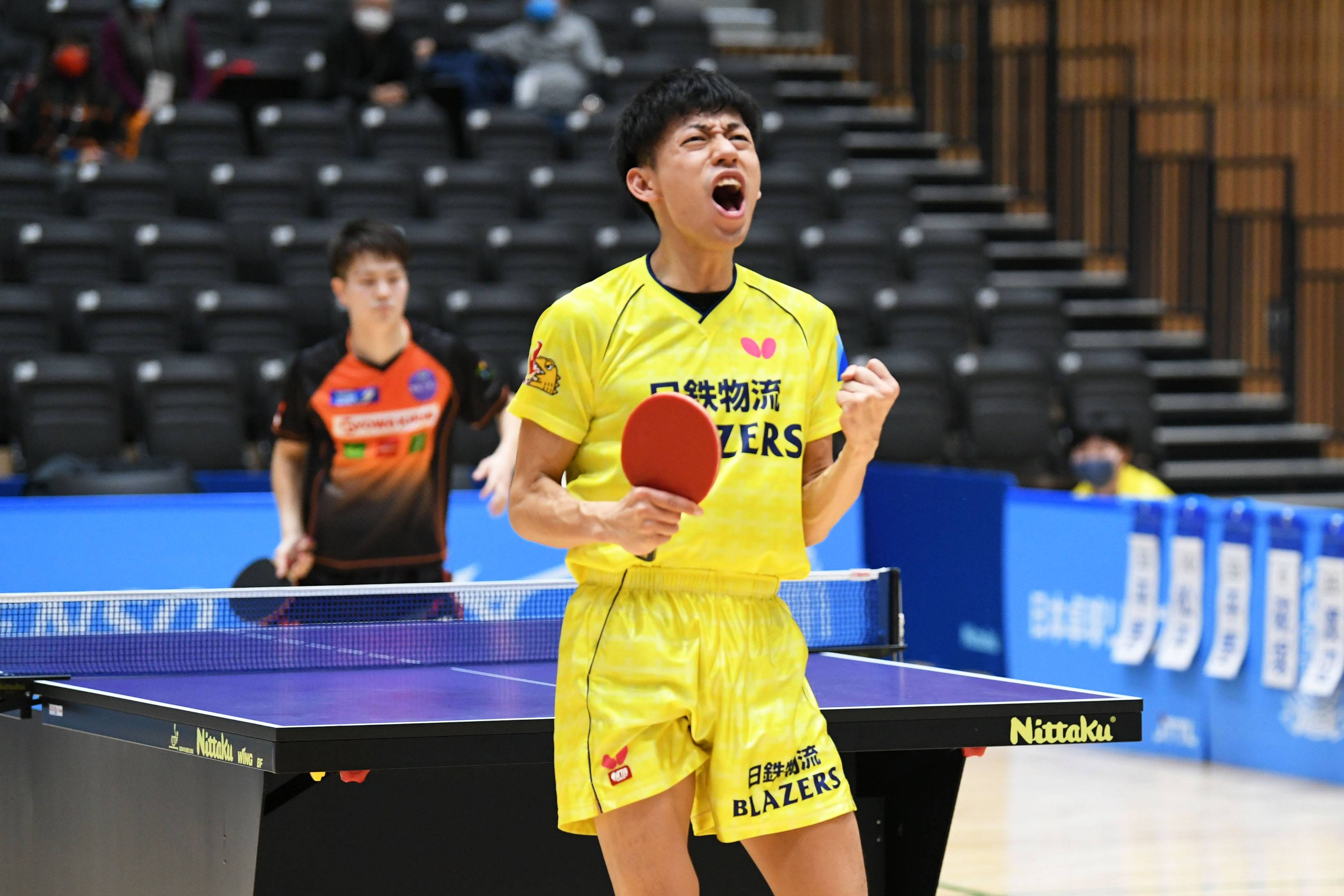 4番で藤村友也がフォア前サービスからの打ち合いで松平賢二を下し、日鉄物流ブレイザーズが決勝進出を決めた。