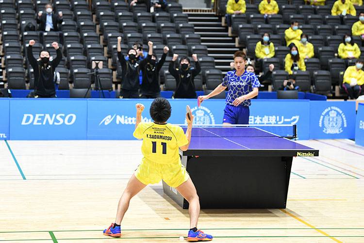 吉田の豊富な経験で巻き返しを図りたい東京アートだったが、定松が圧巻のパフォーマンスを見せた。吉田を相手にラリー戦に持ち込むと分が悪いと踏んだ定松は、前陣から動かず、ラリーの速い段階から積極的に強打していく短期決戦を採用。この戦術が見事にはまり、吉田得意のしのぎや得点時のパフォーマンスが出る前に定松が勝負を決め、日鉄物流ブレイザーズが早くも王手をかける。