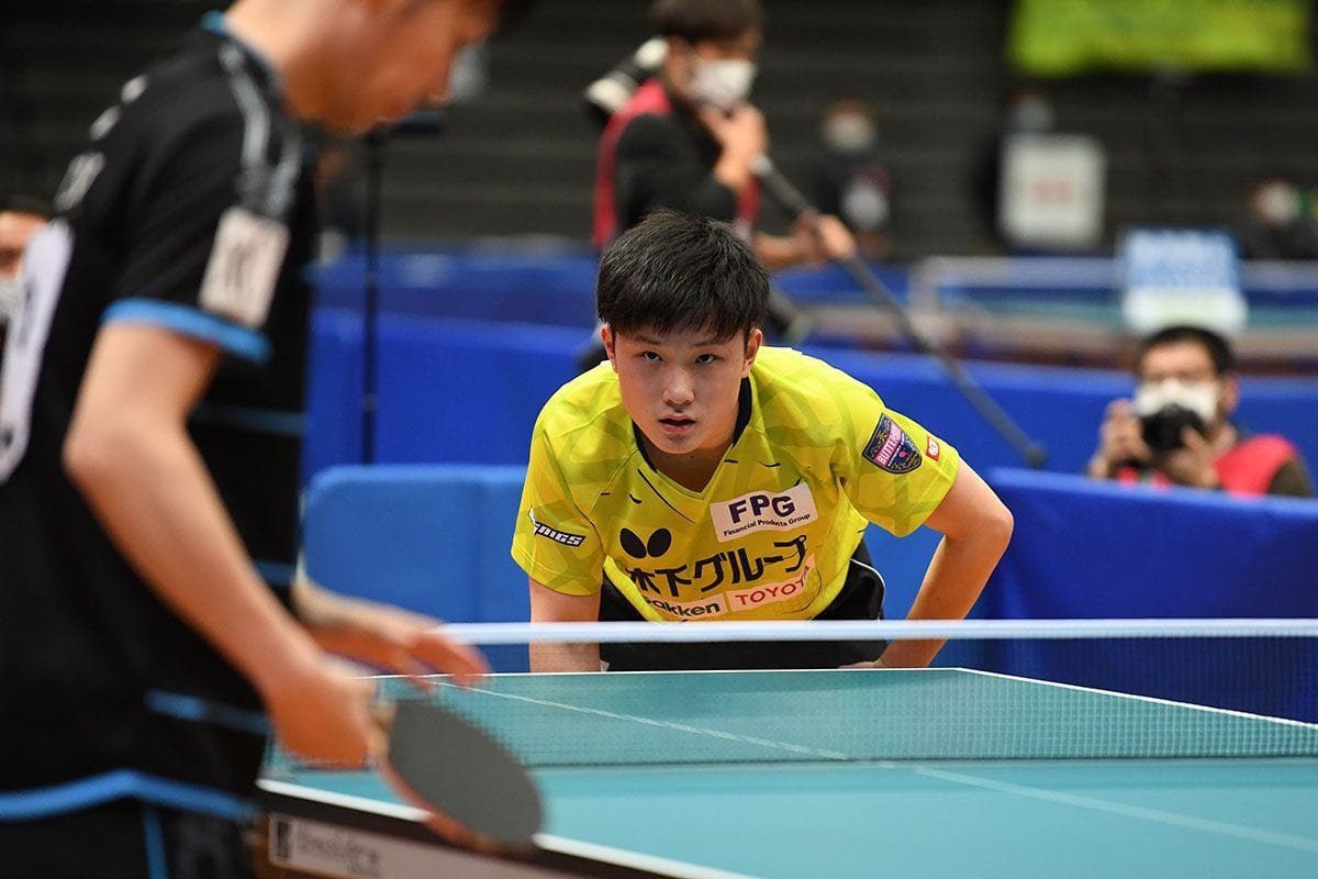 宇田が消えたブロックを勝ち上がったのは森薗政崇(BOBSON)。5回戦でTリーグ・岡山リベッツのチームメイト、町飛鳥(鹿児島県体育協会)を退けると、6回戦で宇田に勝った鈴木を倒した小林広夢(愛工大名電高)に競り勝った。