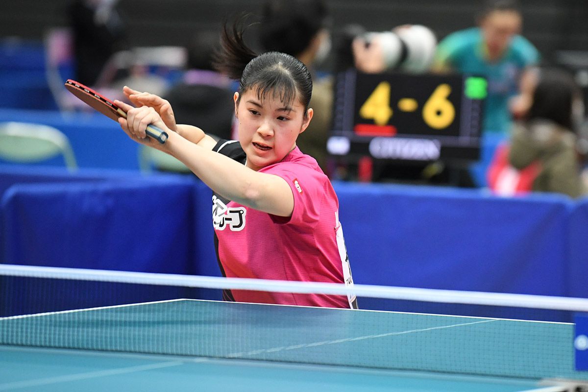 第1シードの早田は6回戦でジュニア女子で優勝した大藤沙月(四天王寺高)と好勝負を演じた。大藤の深く鋭いボールは全日本チャンピオンにも十分に通用することを証明したが、やはり、早田は要所でシニアで磨かれた技術と威力を発揮し、大藤を4対3で退けた。
