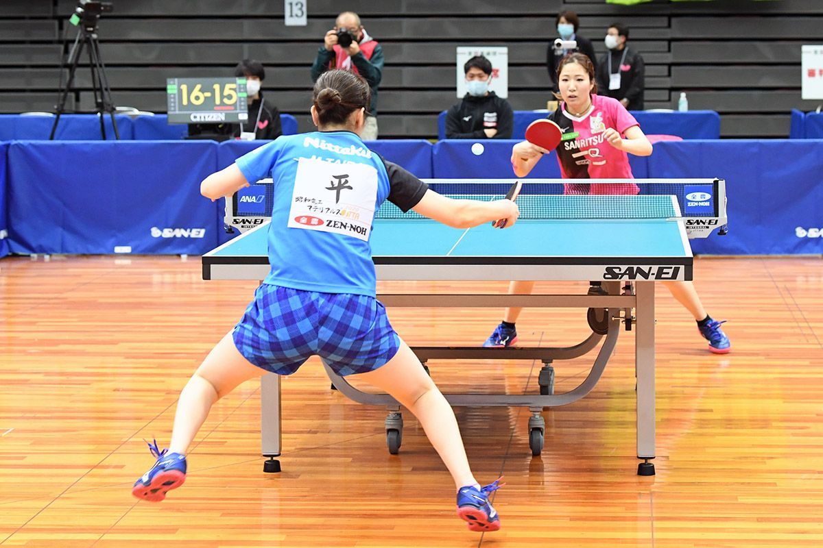 優勝経験があり、今大会でも優勝候補の一角だった平野は4回戦で木塚陽菜(済美高)、5回戦で菅澤柚花里(四天王寺高)と高校生を連破しベスト16入り。ここで一昨年2位の木原と対戦。けがのため練習を再開したのが12月中旬ということで、練習不足の影響もあったのか、サービス・レシーブで先手を取られ、2つのジュースを競り落としてストレートで敗戦。V2の夢は来年以降に持ち越しとなった。