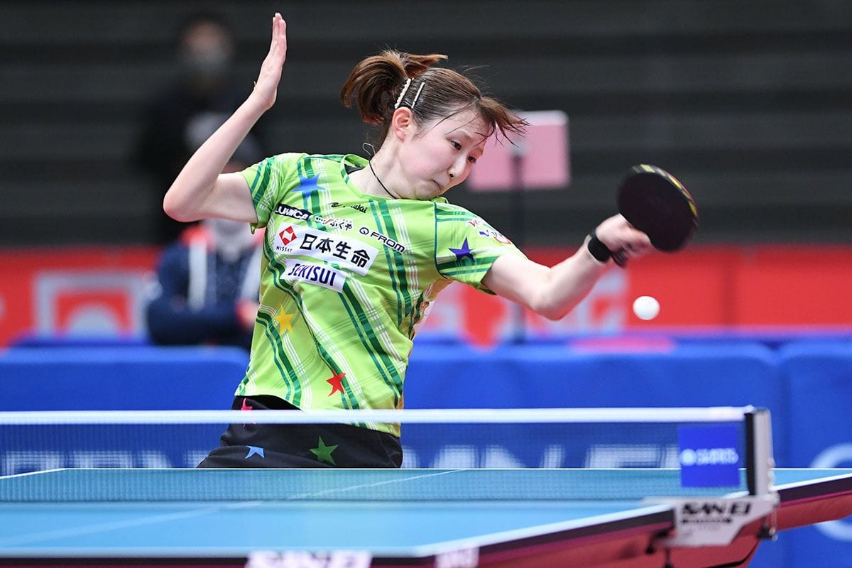 大会6日目は女子シングルス準々決勝のうち2試合が行われ、早田ひな(日本生命)と伊藤美誠(スターツ)がベスト4へ勝ち上がった。