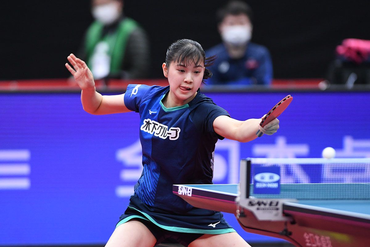長﨑も、加藤美優(日本ペイントホールディングス)や芝田沙季(ミキハウス)を倒した伸びやかな両ハンドで見せ場をつくったが、「(伊藤は)変化の幅がすごくて分かっていても対応できなかった」というように要所で得点を許してもらえず、ゲームを奪うことはかなわなかった。