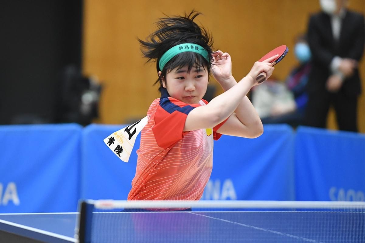2位の小宮山朋香(新潟青陵)はテンポの良い攻撃が光ったが、芝田のカットを崩しきれず。