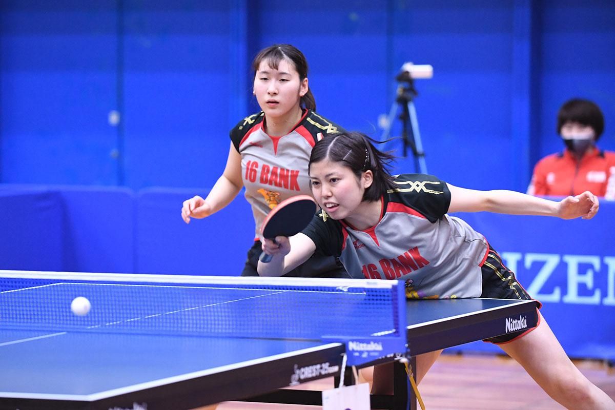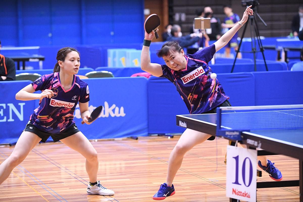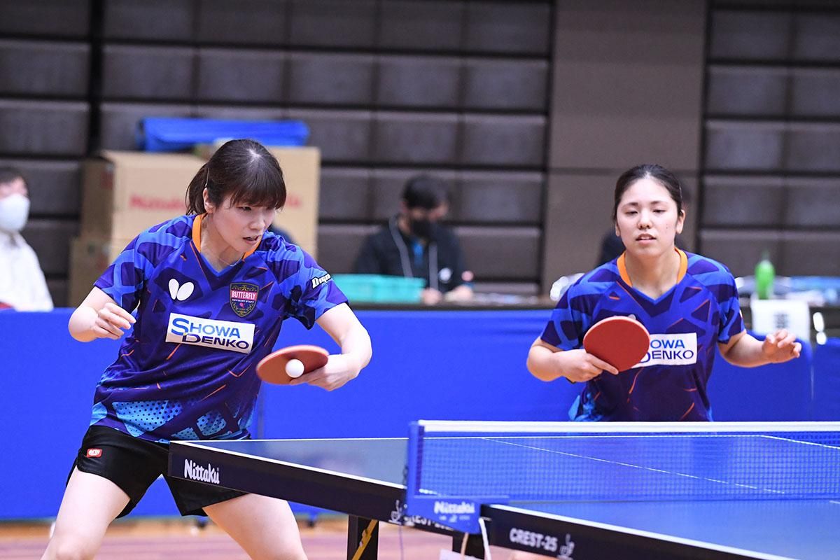 女子ダブルスを制したのは、宋恵佳/成本綾海(中国電力)。成本が変化速攻で崩し、宋が両ハンドドライブでつなぐ連係が試合を重ねるごとに冴え、見事に栄冠をつかんだ。