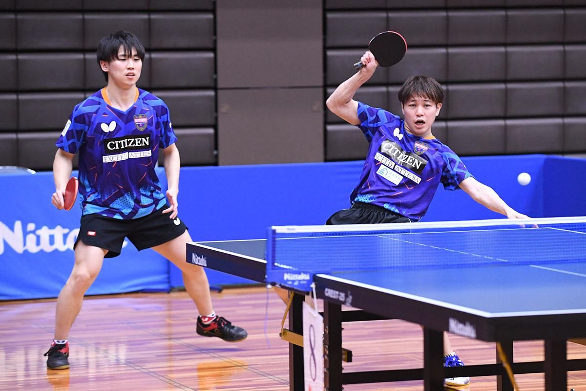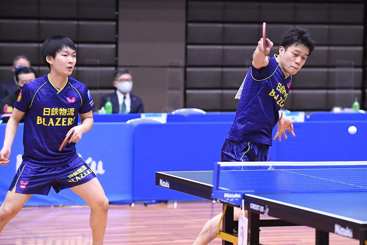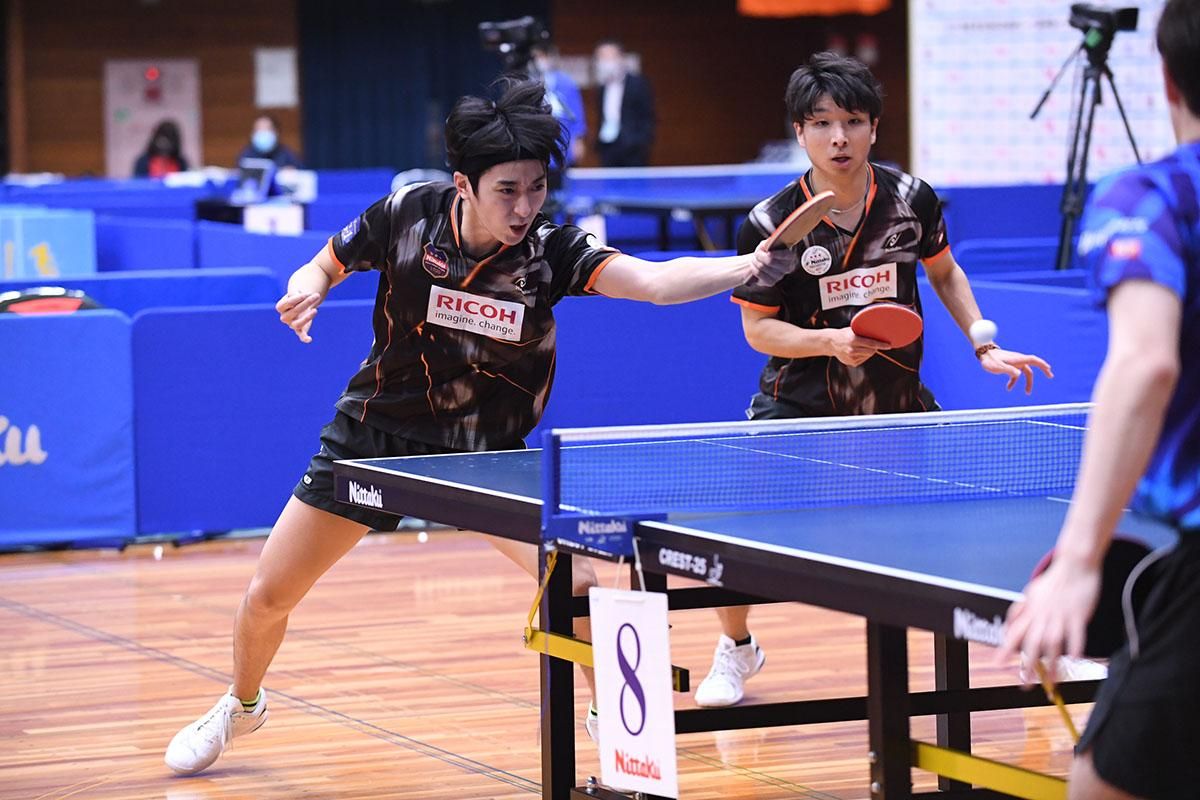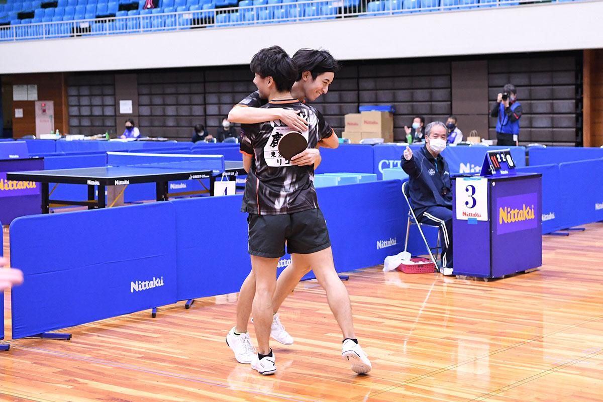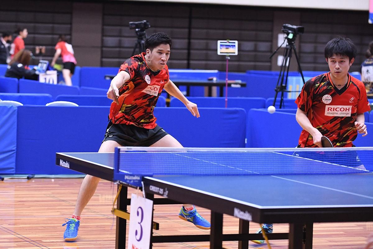 男子ダブルスは、鹿屋良平/郡山北斗(リコー)が初優勝を果たした。決勝はゲームオールにもつれ込む打ち合いになったが、最後まで果敢にラケットを振った鹿屋/郡山が日鉄物流ブレイザーズペアを振り切り、栄冠を勝ち取った。