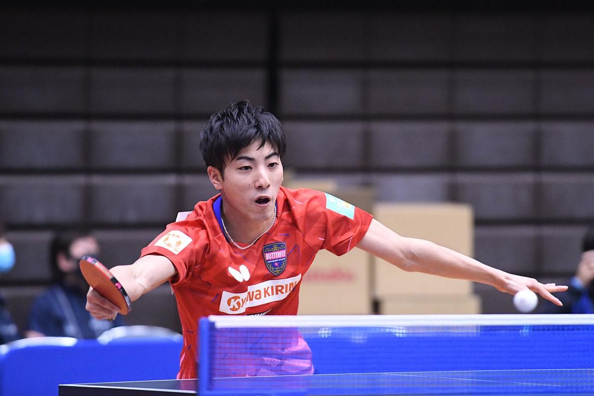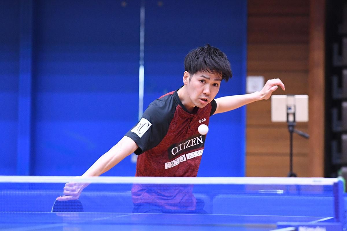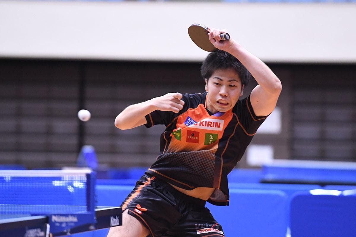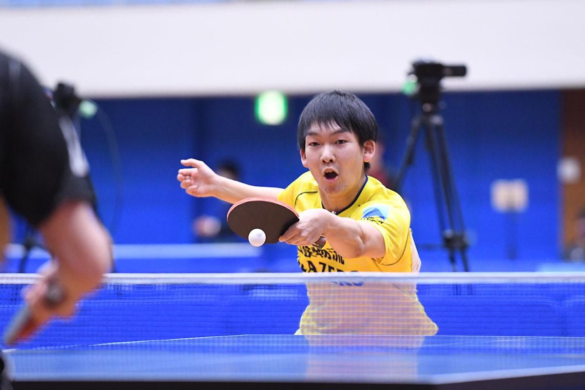 2位の酒井明日翔(シチズン時計)は、強烈なチキータと目の覚めるようなカウンターで、準々決勝で鹿屋良平(リコー)との強打者対決を制すと、準決勝ではラリー巧者の藤村友也(日鉄物流ブレイザーズ)に競り勝ち、決勝まで勝ち上がった。