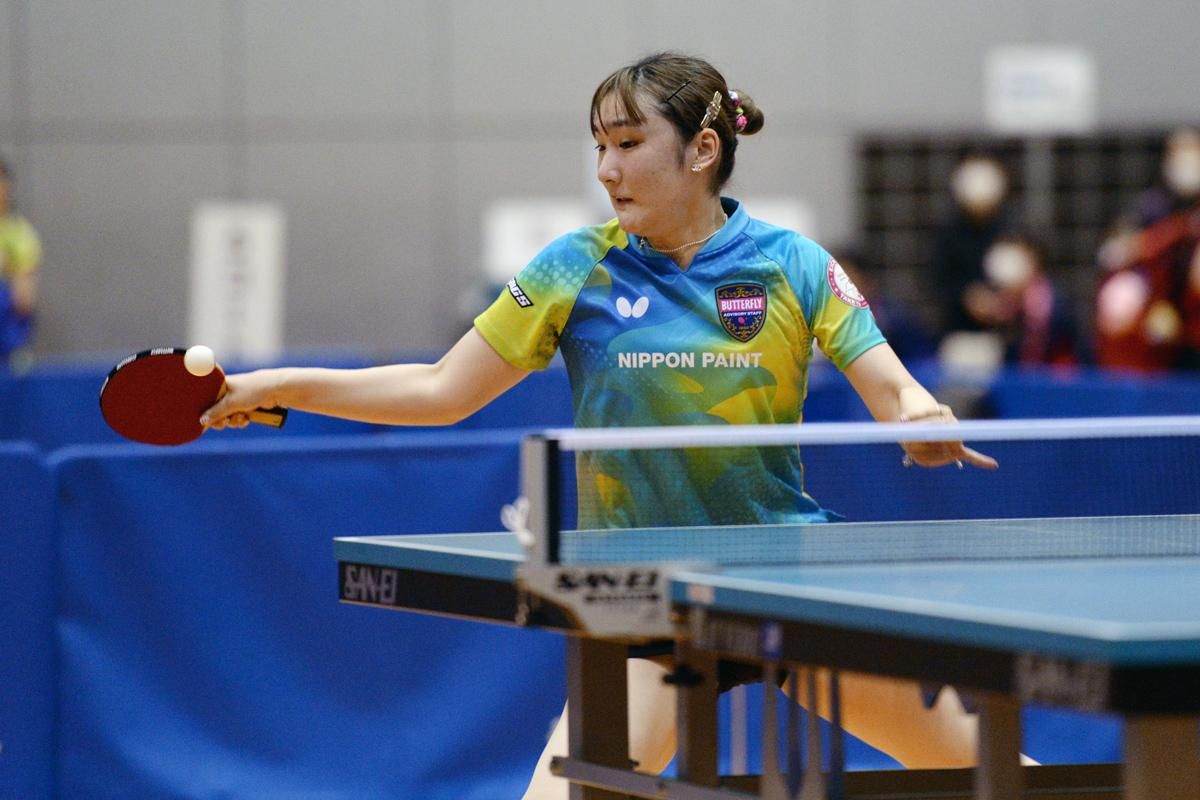 決勝では異質型の安藤の緩急に対応しきれずに1ゲーム目をあっさり落とすも、2ゲーム目からはしっかり対応し、俊敏なフットワークと持ち前のフィジカルを生かした両ハンドドライブで前陣でプレーする安藤に先手を取らせずに圧倒した。