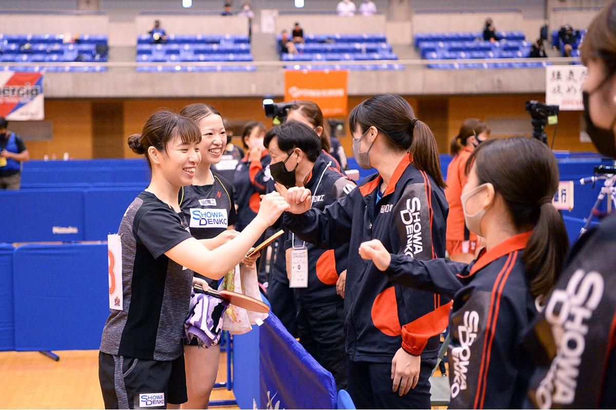 昭和電工マテリアルズのスタートは苦しかった。東京オリンピックを目前に控えたゴールド選手(他所属選手のレンタル)の石川佳純の参戦でチームにプレッシャーがかかったのか、初戦のサンリツ戦で敗れ、痛い黒星発進。しかし、初戦の敗戦後、「自分のためじゃなく、石川のオリンピックを応援するためにがんばろう」という内山監督の声かけに、選手が応えた。