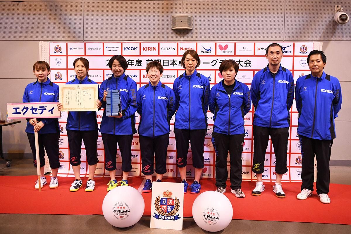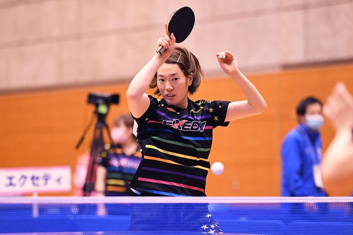エクセディが、チーム過去最高位の3位。2021年全日本卓球女子シングルス最年長出場選手として話題を集めたキャプテンの玉石美幸を中心に、パワフルな攻撃が魅力の竹前裕美子、2019年インターハイ王者の出雲美空らを揃えたオーダーは、さらに上を目指せる布陣だ。