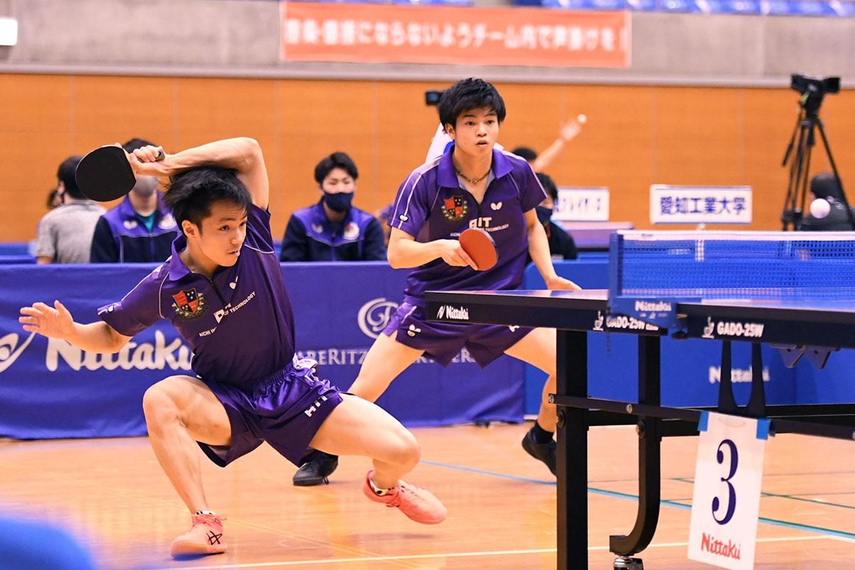 男子1部は、愛知工業大学が実業団の猛者たちを相手に7戦負けなしで、文句なしの優勝を果たした。初戦のリコー戦、続く2戦目のシチズン時計戦とラストまでもつれたが、いずれの試合もラストで1年生の曽根翔が競り勝って切り抜けると、全勝ロードを一気に突っ走った。