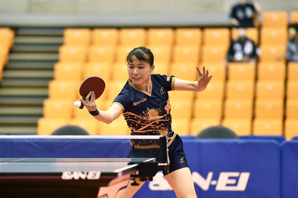 男子のカットに対し、伊藤がどう戦うのか注目が集まったが、序盤こそ原田のツッツキとカットの変化をつかみあぐねていた感のあった伊藤だったが、中盤から多彩なチャンスメイクからのスマッシュを連発し、ストレートで快勝した。