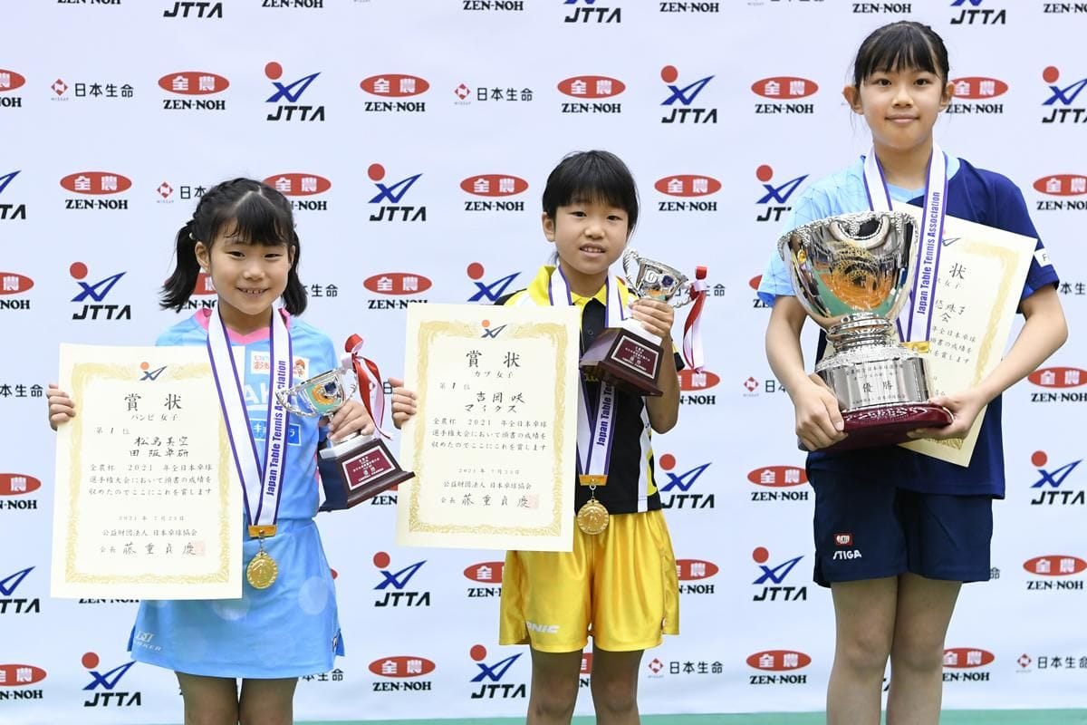 3位には準々決勝で栗田寧々(川嶋ジュニア)との接戦を制しベスト4入りを決めた深山稟心(ヒゴ鏡卓球クラブ)と、サウスポーからの鋭いバックハンドと決定力の高いフォアハンドで第1シードの佐藤希未(TKOクラブ)を退けた伊藤友杏(羽佳卓球倶楽部)が入った。