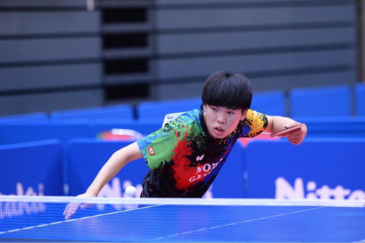 トップは野田学園がエースの徳田、一方の明徳義塾はバック面に表ソフトラバーを貼るシェーク異質型の横部を起用してきた。1ゲーム目は徳田が横部の球質に慣れずに落とすが、2ゲーム目から決め急がずに手数を増やして対応し、ゲームカウント3対1で徳田が勝利。野田学園が先制する。