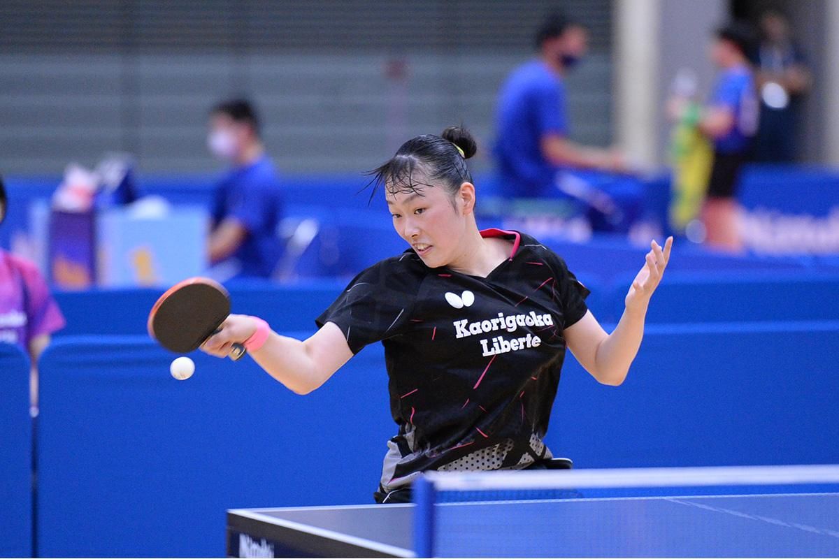菅澤柚花里(四天王寺)は、準々決勝で赤江夏星(リベルテ)をゲームオールで振り切り、3位。準決勝では横井にゲームカウント2対0とリードしたものの、そこから得意のワイドなコース取りを読まれて逆転され、涙を飲んだ。