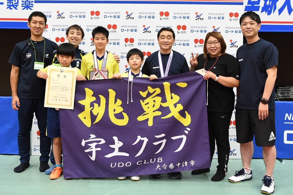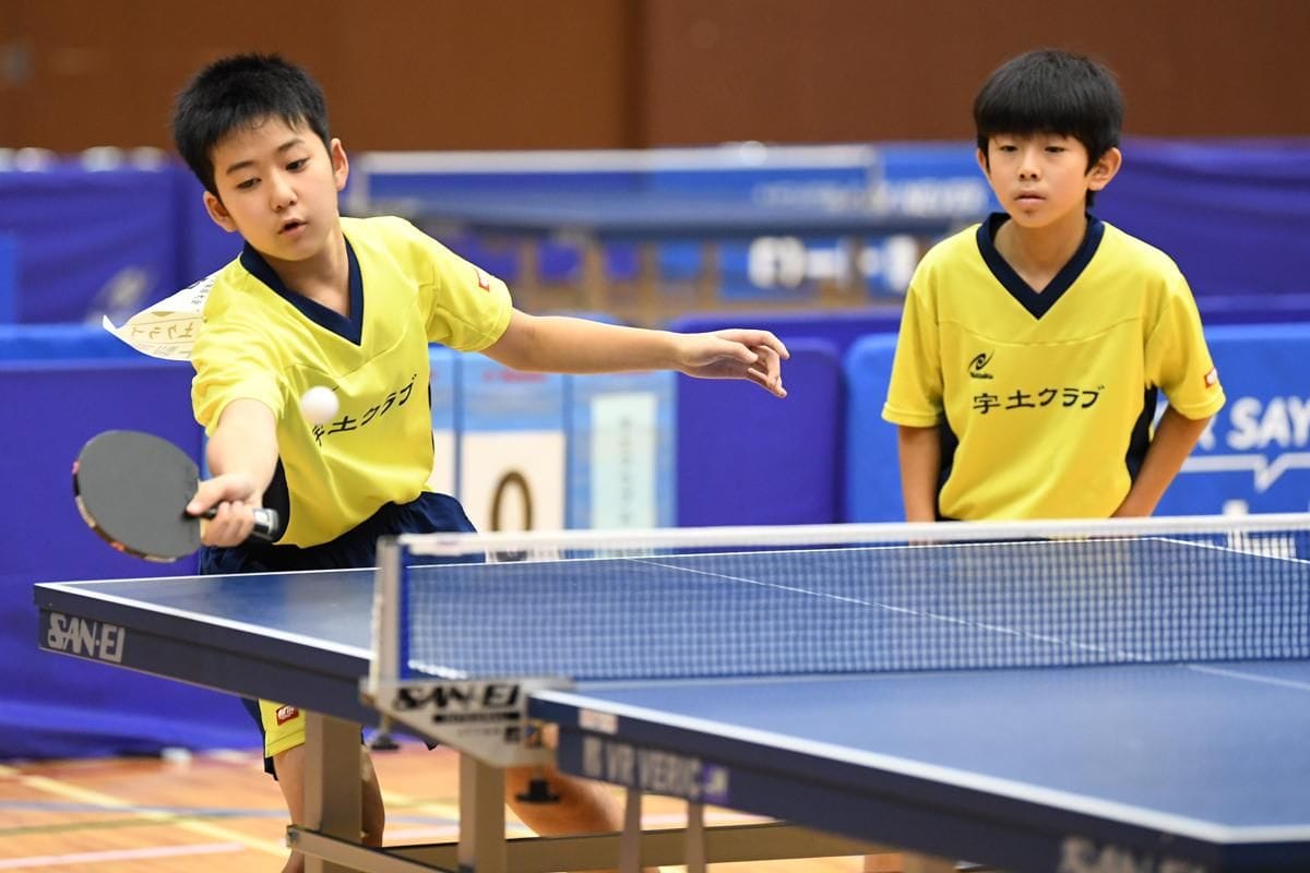 宇土クラブAは準々決勝で卓伸クラブ(愛知)、準決勝で東広島スカイジュニア(広島)を破って決勝進出を決めた。4年生ながらセンスフルなバックハンドを振る中野純大、決勝でも得点した渡邉/中野純正の連係のよいダブルスを軸に勝ち上がってきた。