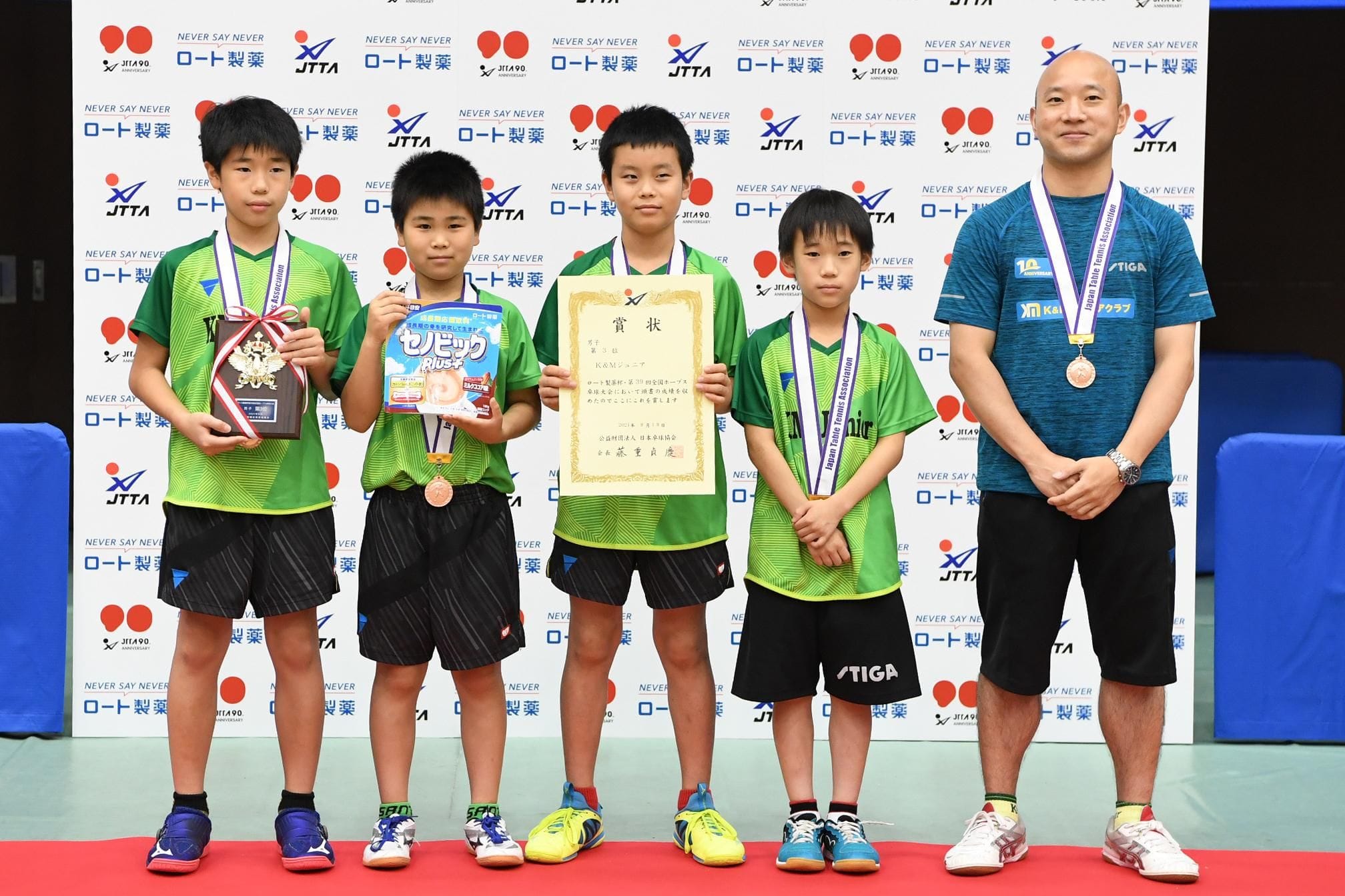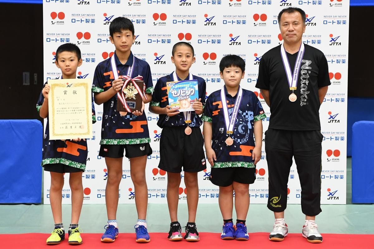 男子団体は、全日本選手権卓球大会ホープスの部(以下、ホープス)優勝の川上流星を擁する新発田ジュニア(新潟)が初優勝を果たした。