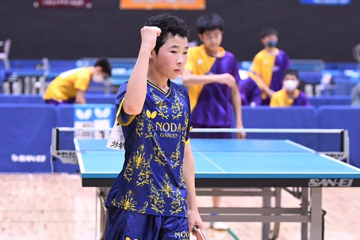 4番、野田学園の小園江は攻守のメリハリの利いたプレーで、カデットの部(13歳以下)チャンピオンの坂井を圧倒。小園江は終始落ち着いた試合運びでラリー戦でも安定感を見せ、先に打たせてカウンターを狙う戦術も効果的に使いストレート勝ちを収めた。