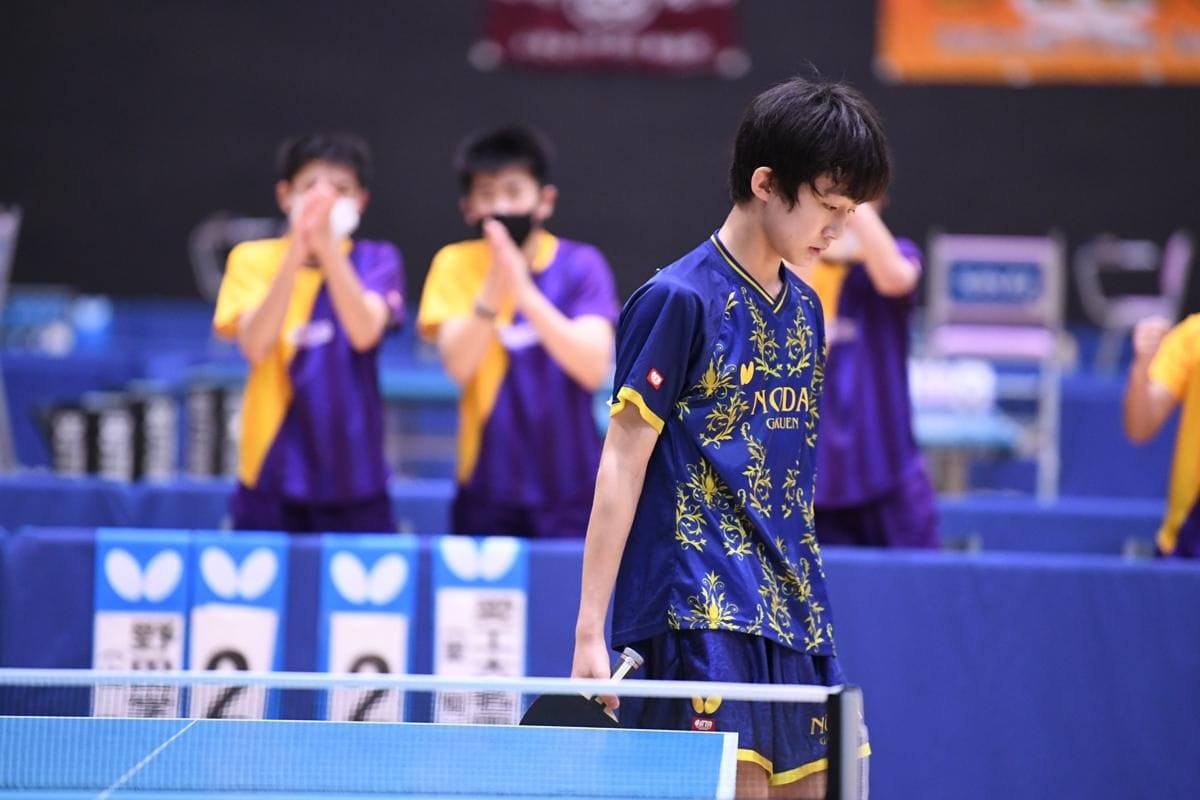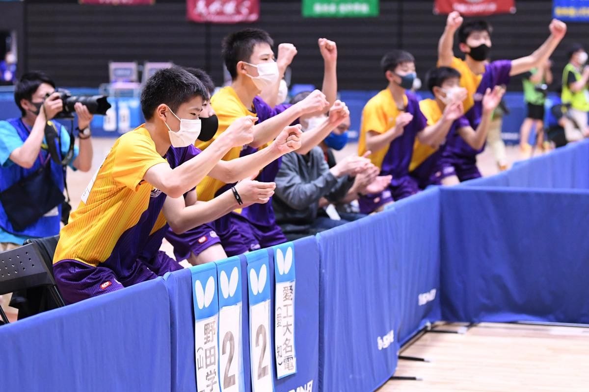 ラストは立ち上がり硬さの取れない杉浦が、伸び伸びとプレーする渡辺に第1ゲームを落とすも、第2ゲームをジュースで取り返すと次第に自分のプレーを取り戻し、前陣で先手を取り渡辺を台から下げる展開でミスを誘い3ゲームを連取。愛工大名電の2連覇を決めた。