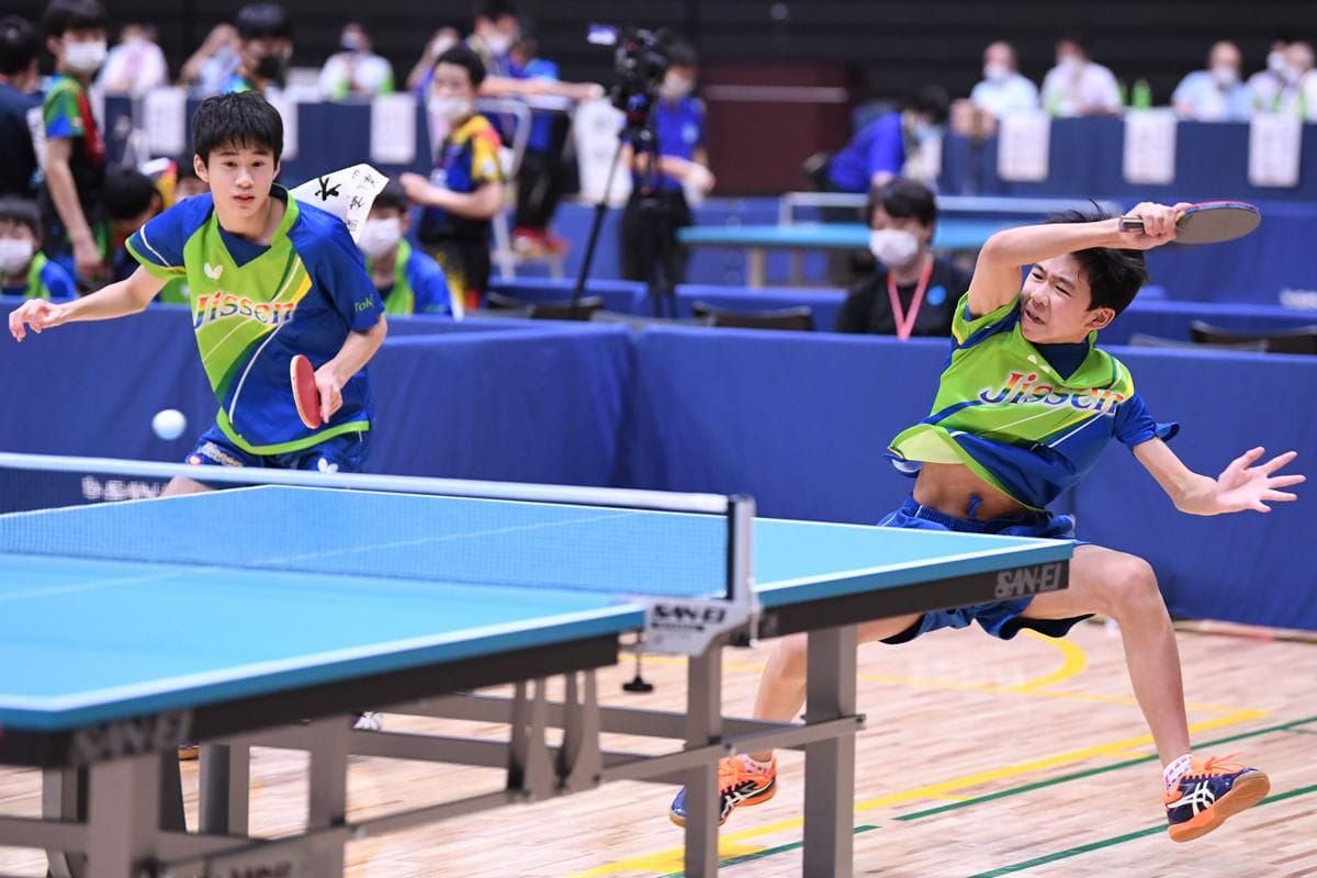 松徳学院は、浜松修学舎(静岡)との熱戦を制して準々決勝に進出した安田学園(東京)を破ってベスト4入り。1回戦でラストを決めた安田学園の廣田のカットを威力のあるドライブで攻めきった松徳学院の世古がトップで逆転勝ちを収め、勢いに勢いに乗ったチームが3対1で勝利。