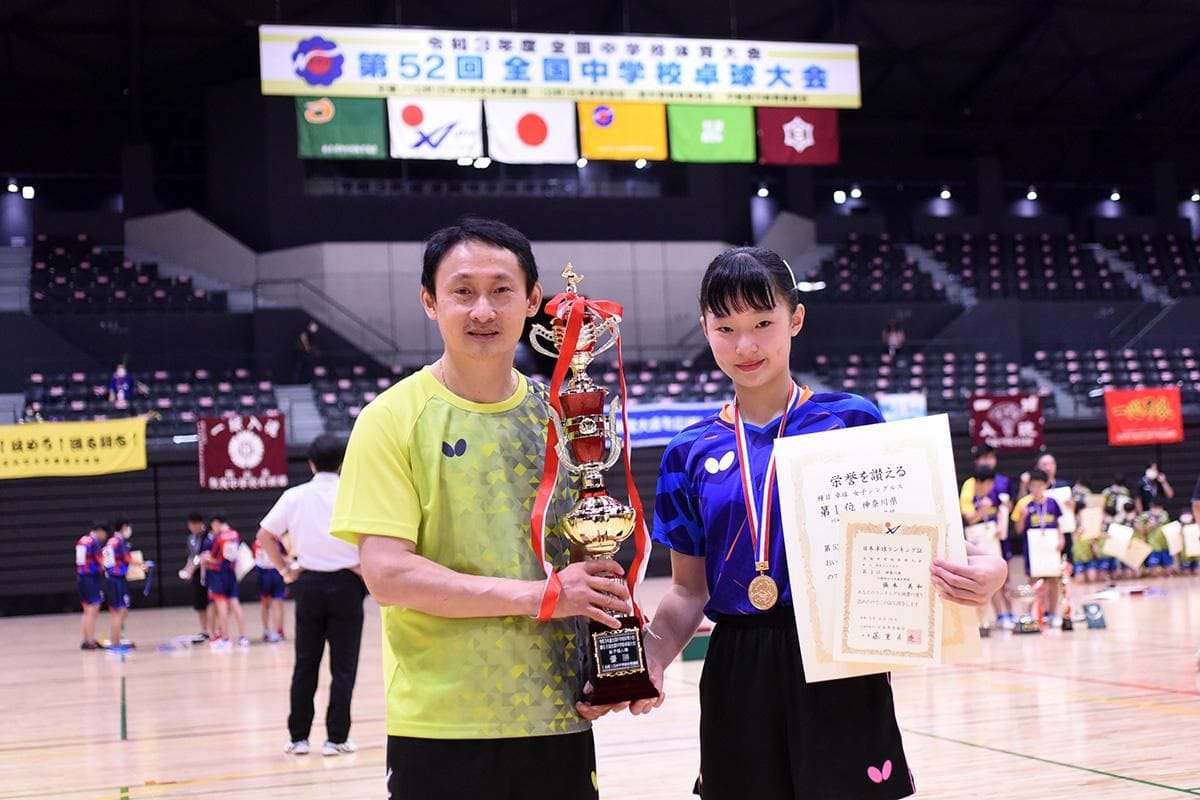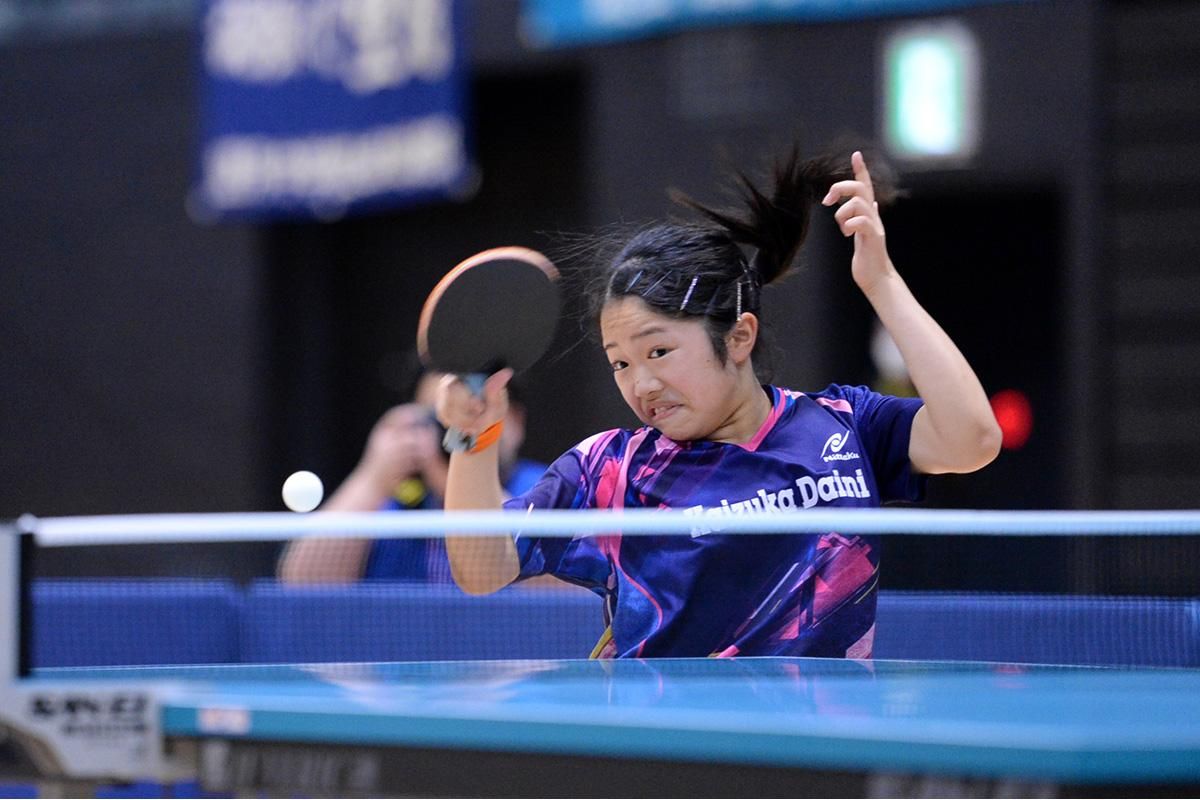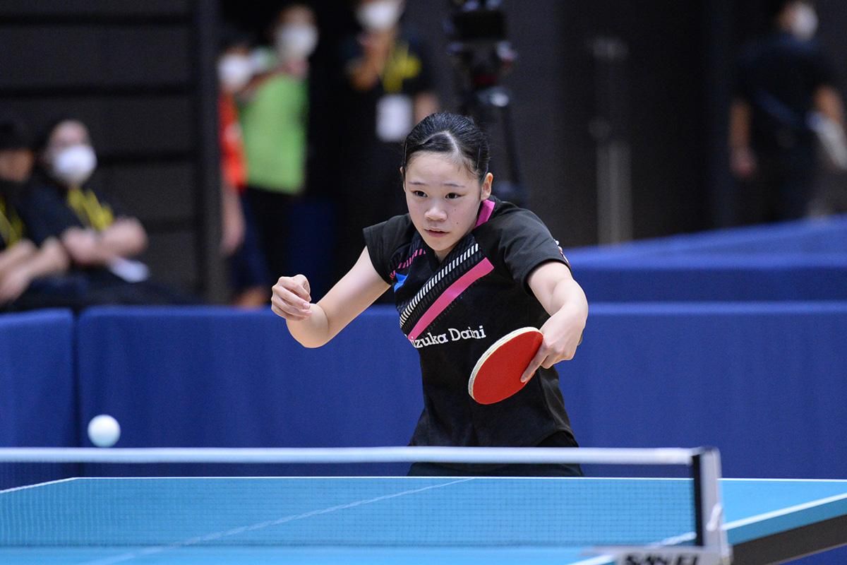 大会最終日は男女シングルスの3回戦~決勝が行われ、女子は1年生の張本美和(川中島)が決勝で第1シードの篠原夢空(貝塚二)を下し、初優勝を果たした。