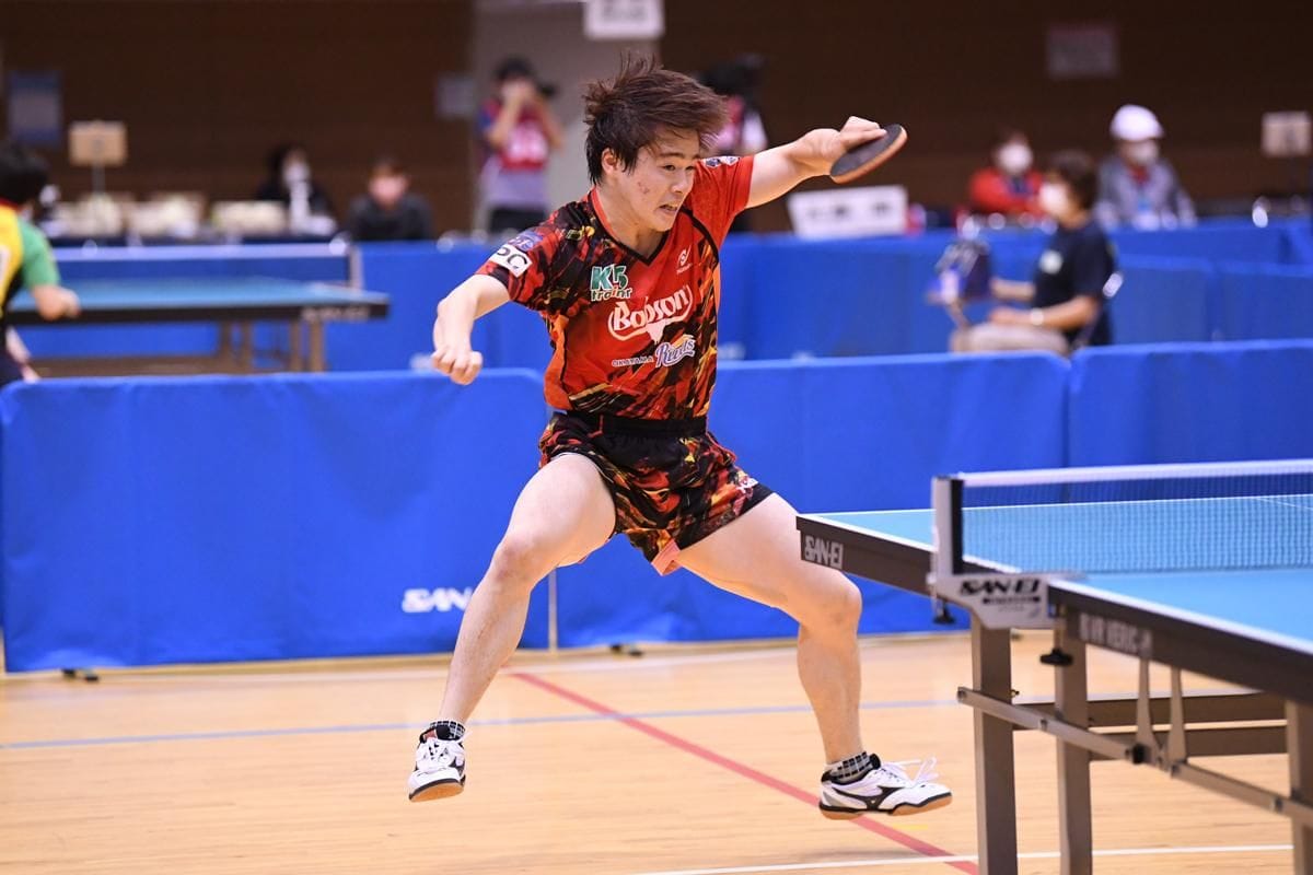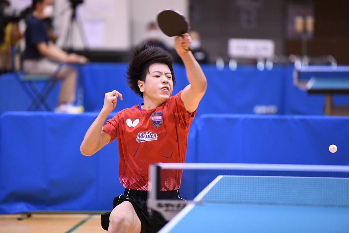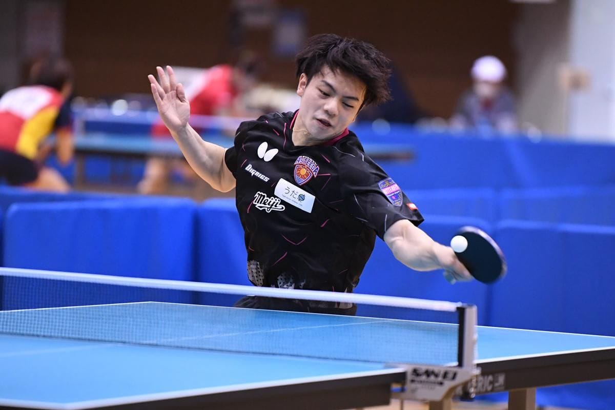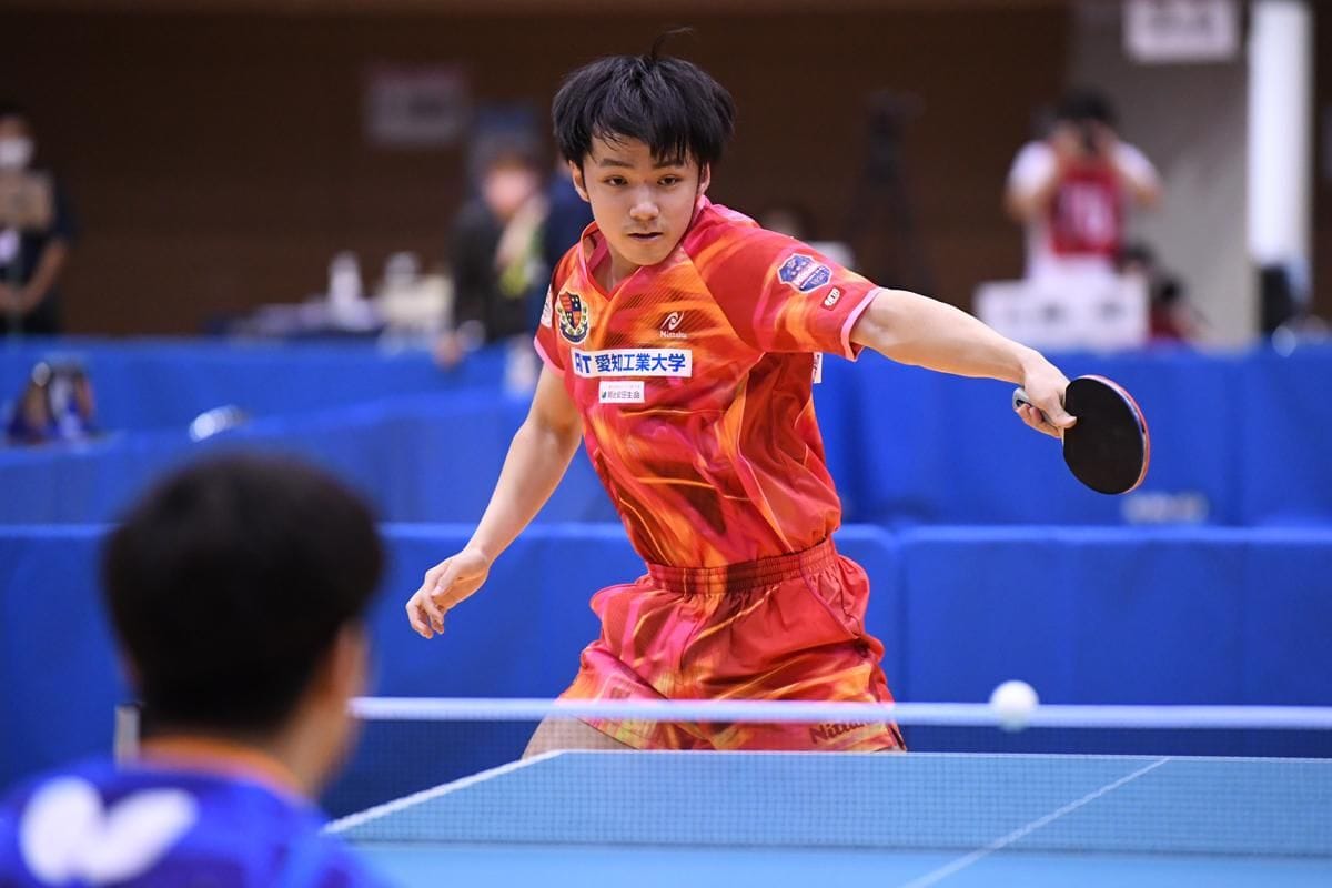 決勝リーグ初戦で戸上にストレート勝ちを収めて勢いに乗ると、森薗戦に続いて篠塚大登(愛工大名電高校)とのフルゲームの競り合いも制して、1人最終戦まで全勝を貫いた。