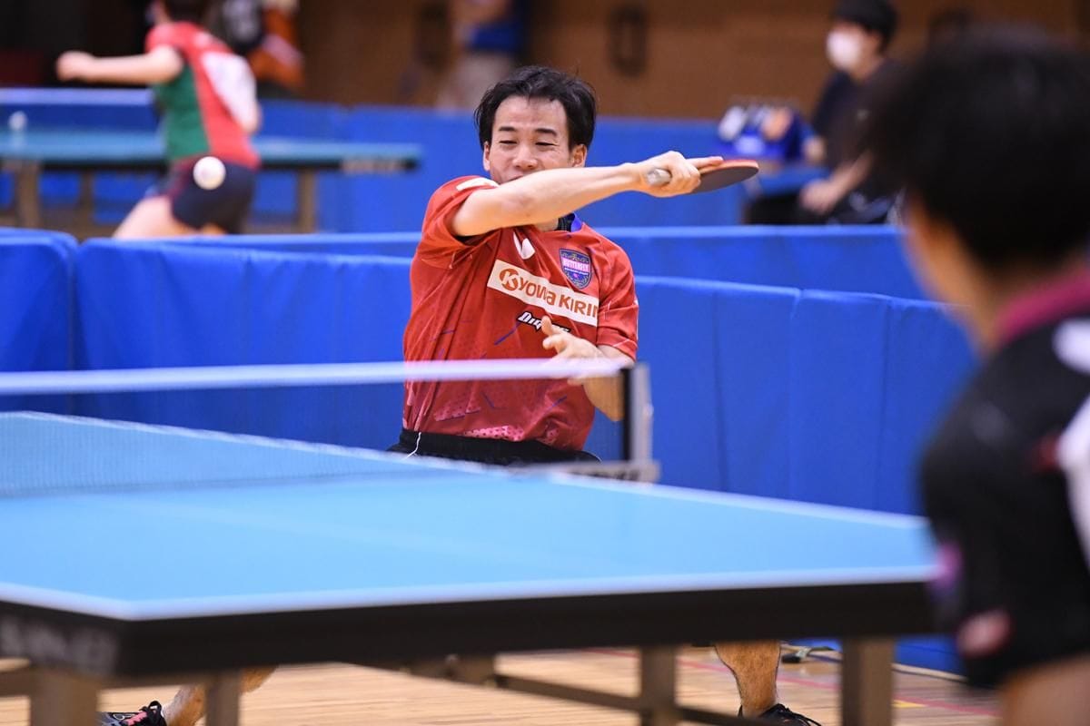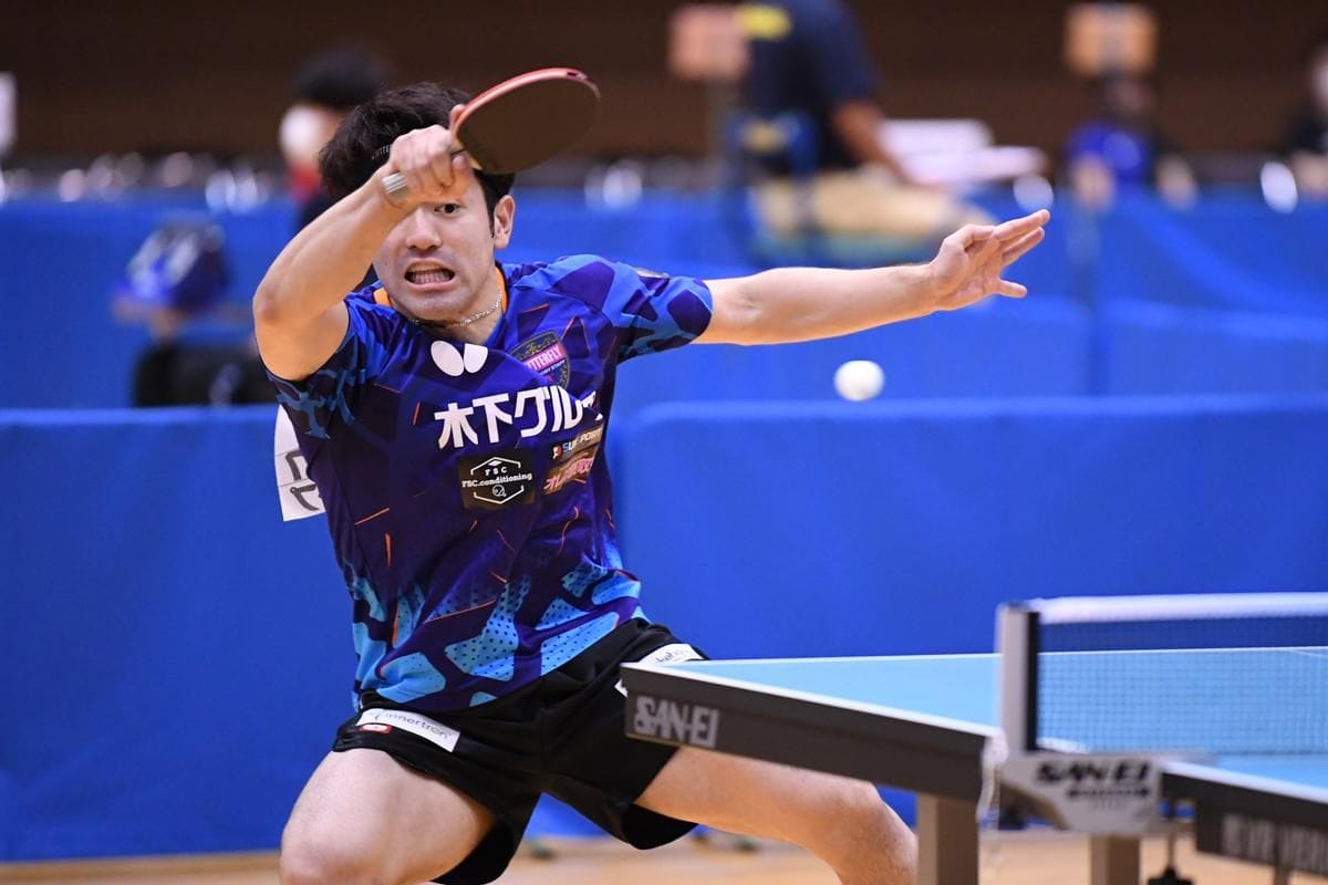 ベテランながら、打球点の早さ、コンパクトなバックハンドなど、たゆまぬアップデートを続けている平野。予選では野田学園高校の後輩の吉村和弘(岡山リベッツ)を破り、決勝リーグ進出を決めた。