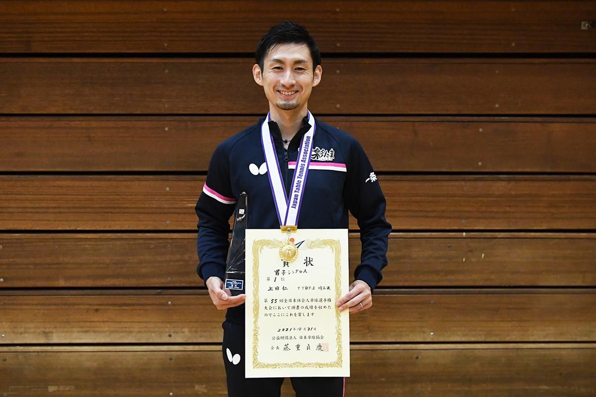 Tリーガーが多数出場し、ハイレベルなトーナメントになった男子シングルスを制したのは、上田(T.T彩たま)。