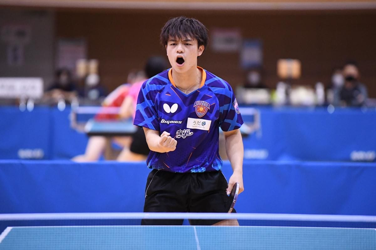 宇田幸矢(明治大)は、チキータやフォアハンドの威力がものすごいので、大物食いできる可能性の高い選手です。