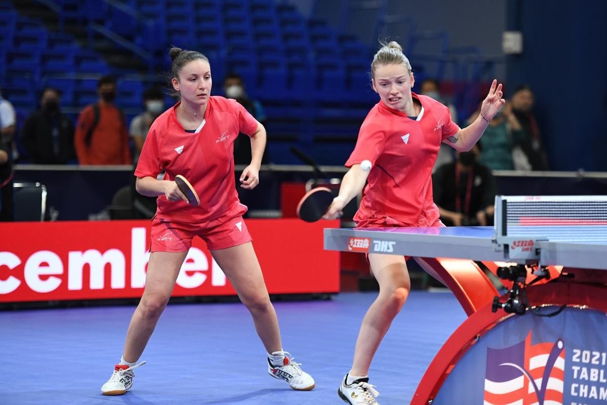 1回戦の相手はフランスのザリフ/ミゴ。ミゴは日本のナショナルトレーニングセンターで練習していたこともある日本に馴染みのある選手だ。伊藤/早田は2年前に比べて、各々の個の力が増した部分と従来の連係のよさで、日本ペアは危なげなくフランスペアにストレート勝ち。ミスが出ても試合の中で調整できる対応力の高さも見せた。