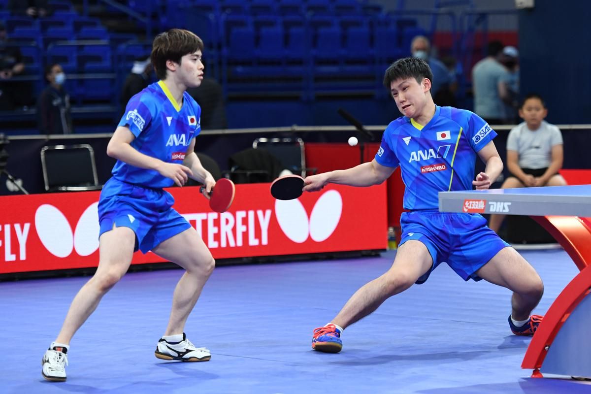 宇田幸矢/戸上隼輔(日本) -11,12,-4,4,4 張本智和/森薗政崇(日本)
