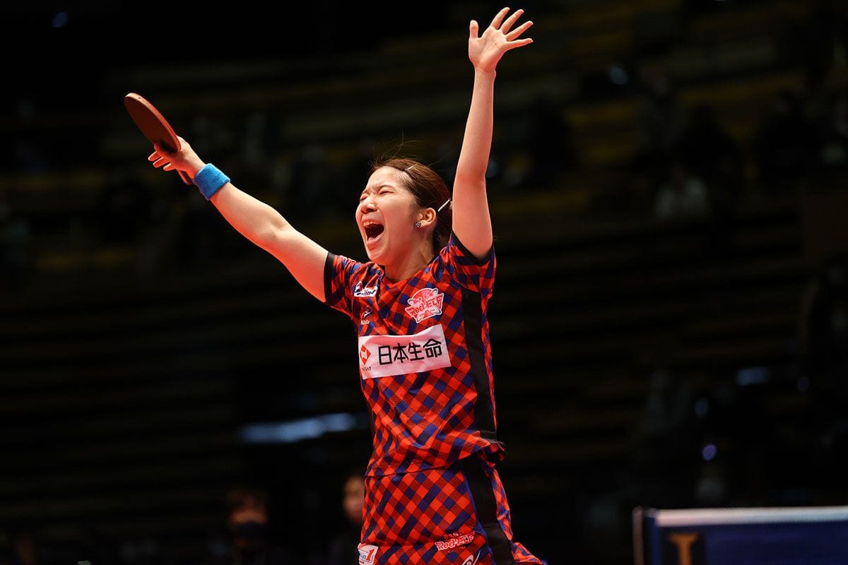 ノジマTリーグ2021−2022シーズン、女子は12月21日に日本生命レッドエルフと木下アビエル神奈川の試合が行われた。第1マッチは木村香純/梅村優香(KA神奈川)が長﨑美柚/赤江夏星(日本生命)に勝利。第2マッチは森さくら(日本生命)が谷岡あゆか(KA神奈川)に勝利。第3マッチは木村香純(KA神奈川)が笹尾明日香(日本生命)に勝利。第4マッチは長﨑美柚(日本生命)が浜本由惟(KA神奈川)に勝利した。ビクトリーマッチ(延長戦)は森さくら(日本生命)が浜本由惟(KA神奈川)に12対10で勝利。3-2で日本生命レッドエルフの勝利となった。