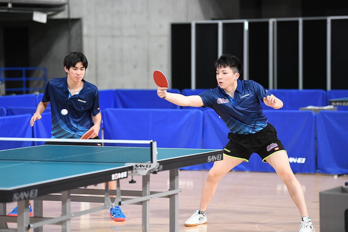 インターハイ2位の濱田一輝/吉山僚一(愛工大名電高)は息の合った両ハンドで4回戦進出。その4回戦では第1シードの江藤慧/松下大星(クローバー歯科カスピッズ)に挑戦する。